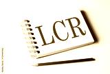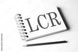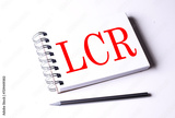 Text LCR- LIQUIDITY COVERAGE RATIO on notebook on the white background, business