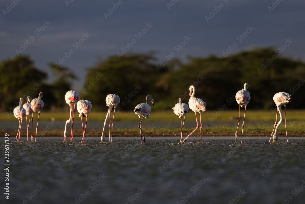 Flamingo birds during safari trip in Amboseli National Park, Kenya