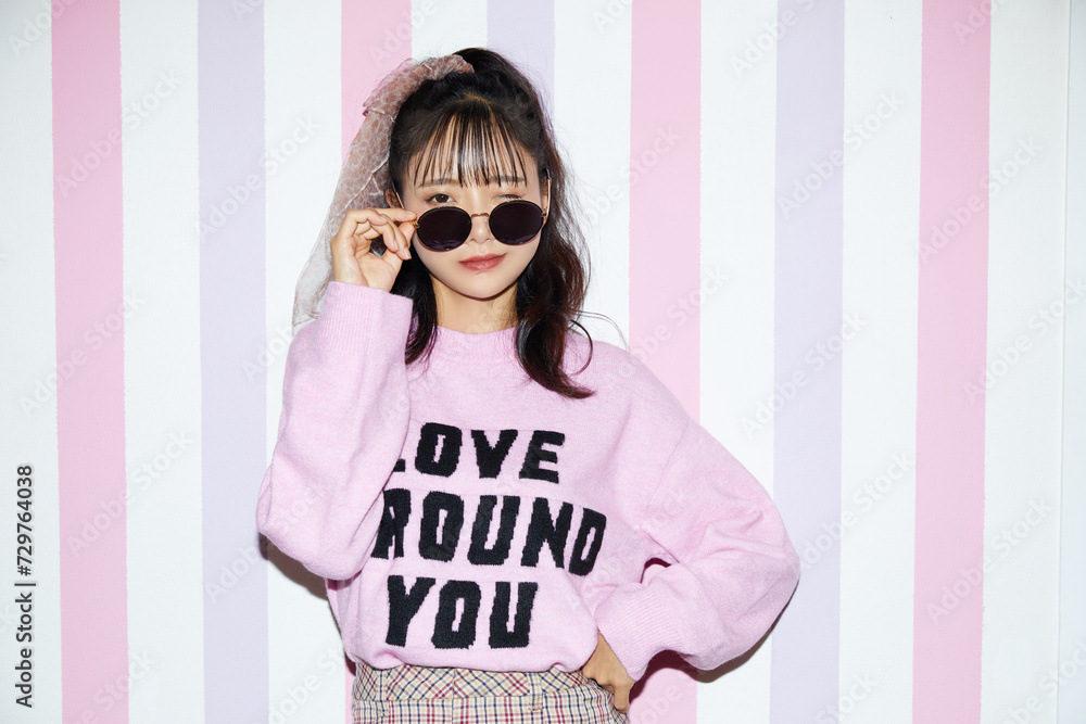 ピンクの衣装を着た若い女性のレトロなポートレート