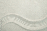 Top view of background and backdrop on sand The concept of balancing stones in a Japanese Zen garden
