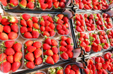 Delectable fragrance of fresh red strawberries fills the air at the market