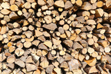 logs of wood in the woodshed to heat the house in winter
