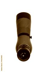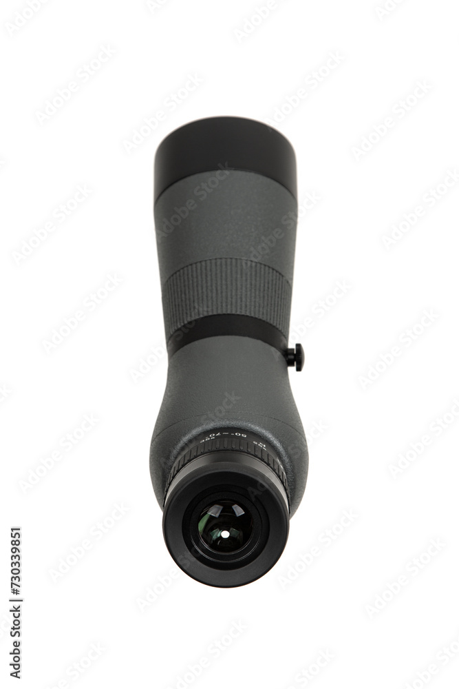 Modern spyglass. Long-range observation device. Monocular isolate on a white back