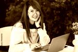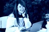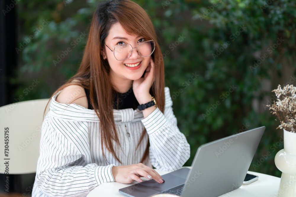 asian freelance people business female talking making using casual working with laptop computer for browsing internet, chatting and blogging and smartphone,notebook in coffee shop.