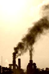 Black toxic smoke emissions from industrial plants, industrial waste contributing to air pollution. Sugar cane factory in Thailand