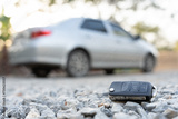 Lost car keys on the ground, Car keys dropped on the floor or fall lying on the street home front. Walking Away From Lost Car Key, can not transport, express, rush time, wast time, emergency