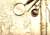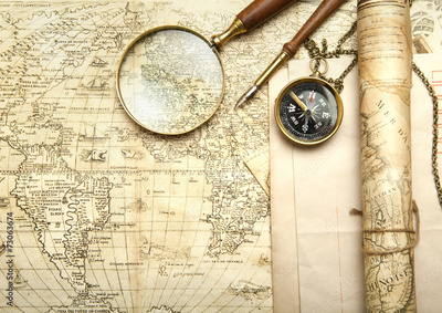 An brass compass on a old map background