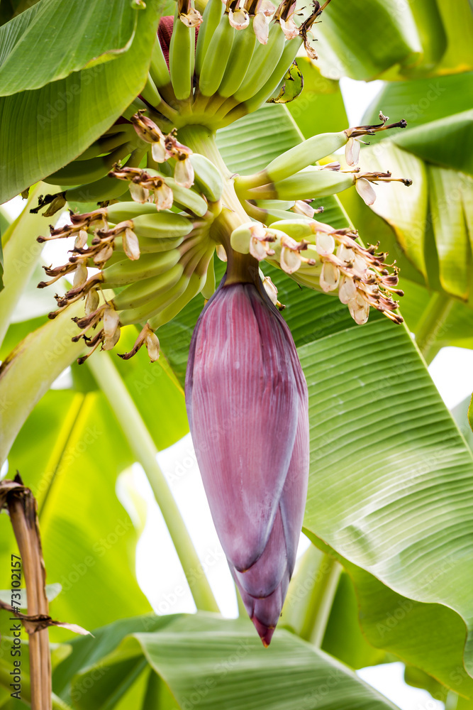 Banana flower with fruits on the branch