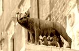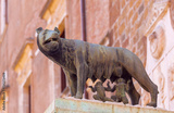 Bronze sculpture of the Capitoline she-wolf feeding children.