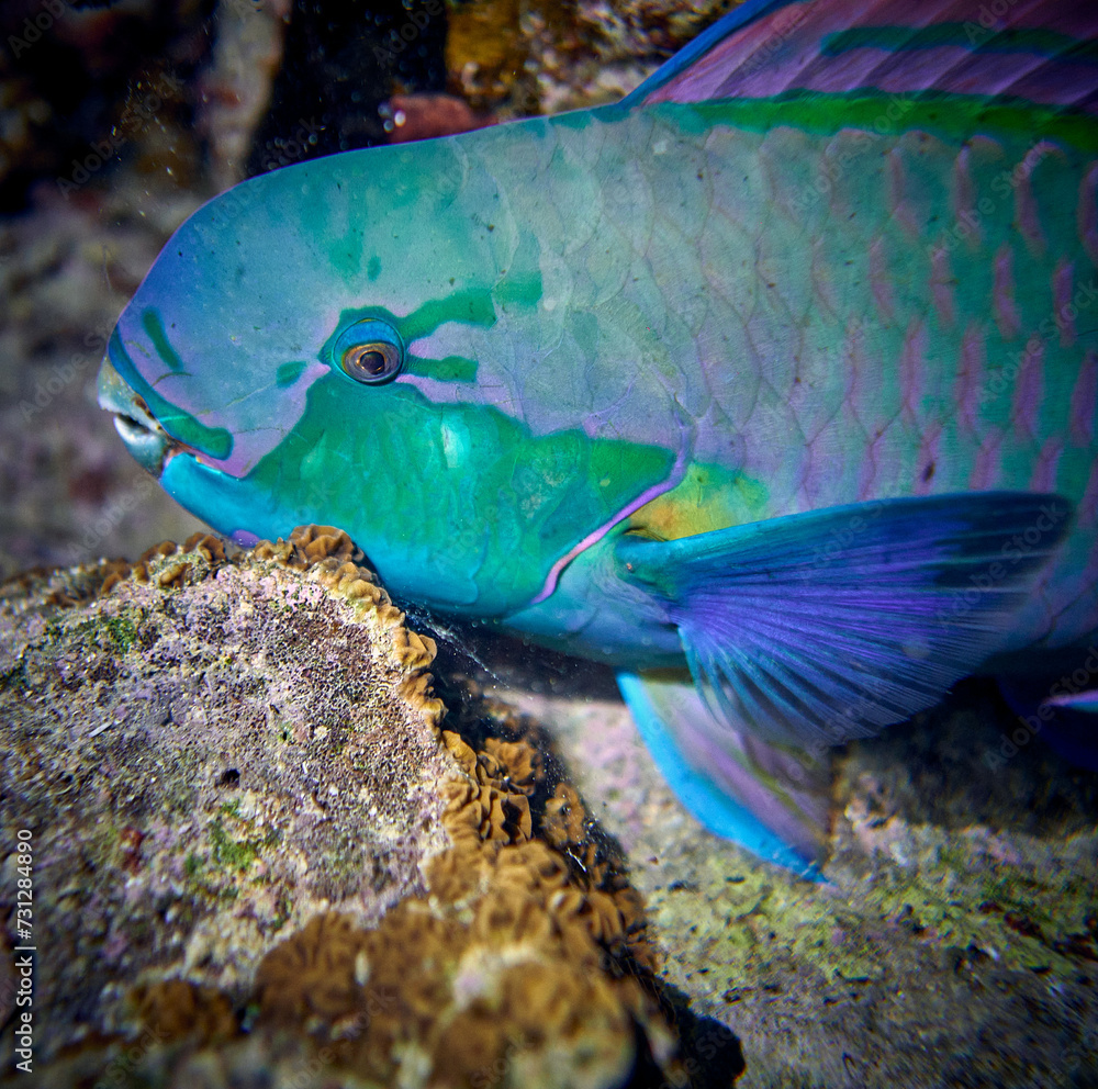 The beauty of the underwater world - Cetoscarus bicolor, also known as the bicolour parrotfish or bumphead parrotfish - scuba diving in the Red Sea, Egypt