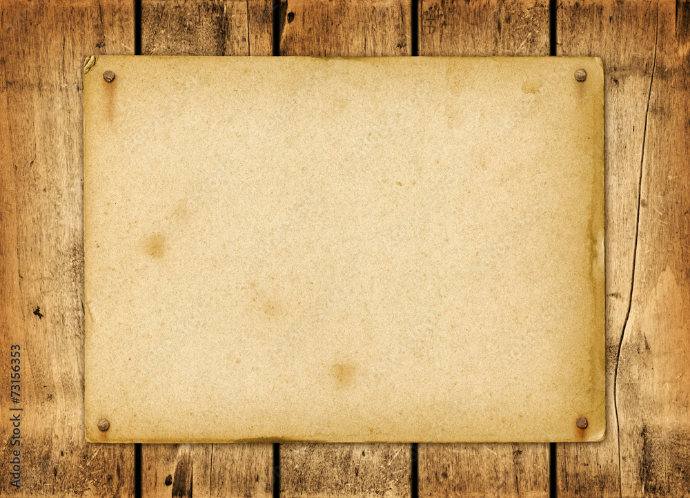 Blank vintage poster nailed on a wood board