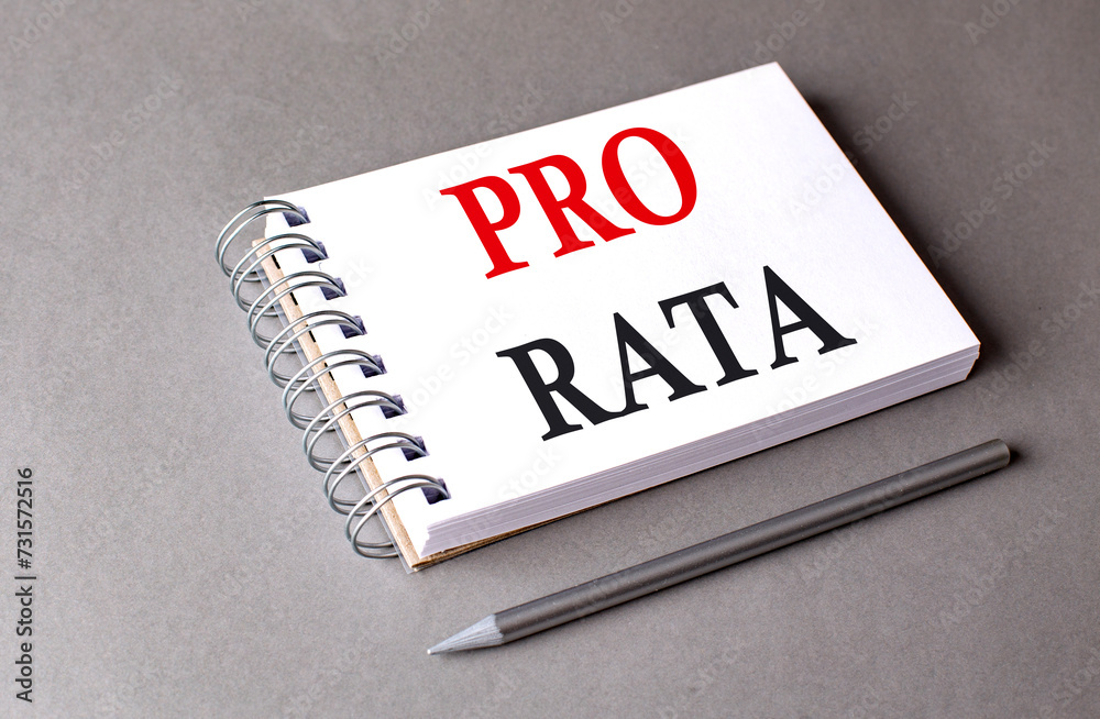 PRO RATA word on notebook on grey background