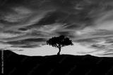 Silhouette of tree in the landscape at sunset. Nature and meadow.