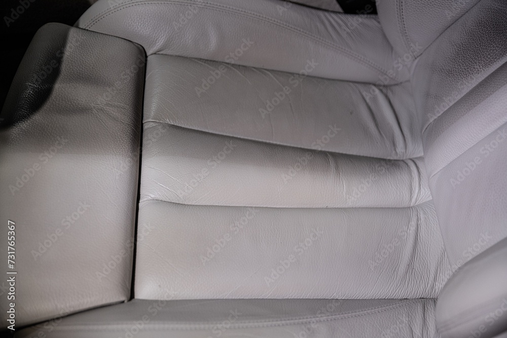 Before and after effect cleaning leather car upholstery in car detailing studio