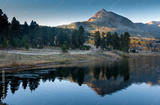 mountain lake view in sunset, colorado