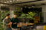 Collaborative Discussion in a Modern Office With Exposed Brick Walls