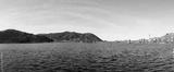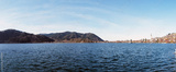 Landscapes of the Bavarian Alps. Schliersee, natural lake in Upper Bavaria with Wörth island in the middele of the lake and mangfall mountains on the horizon