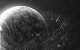3D illustration of the problem of pollution of the Earth's orbit by debris, junk and satellites. High quality digital space art in 5K - ultra realistic visualization.