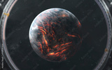 3D illustration of Planet Earth is destroyed by flames and explosions, the surface is covered with lava. High quality digital space art in 5K - ultra realistic visualization.