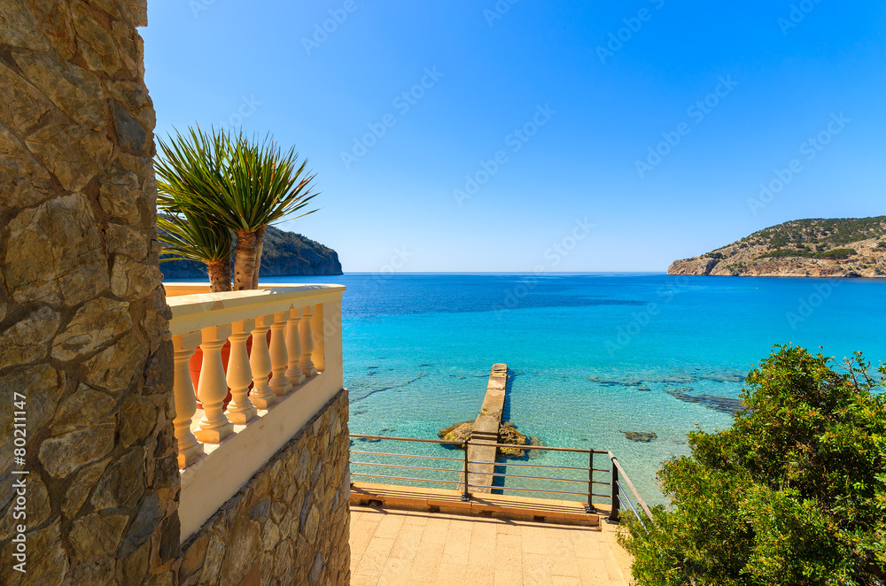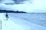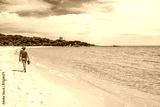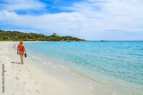 Young woman walking on white sand beach, Cala Pira, Sardinia