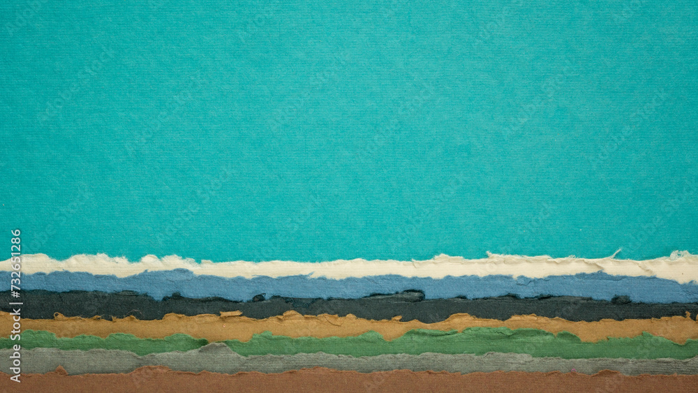 abstract landscape in blue and green pastel tones - a collection of handmade rag papers