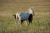 Asino dell'Asinara (Equus asinus) dal mantello di colore bianco che si ritiene legato ad una forma di albinismo incompleto. Foresta demaniale di Prigionette. Porto Conte. Alghero. Sardegna. Italia.