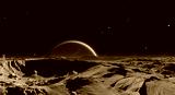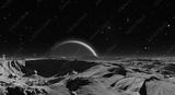 Panorama of Phobos with the red planet Mars in the background