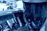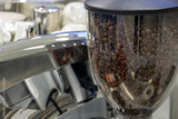 Coffee beans in bean hopper, part of coffee machine in a coffee shop.