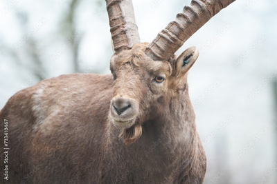 portrait of an Ibex, swiss capricorn in the zoo with huge horns