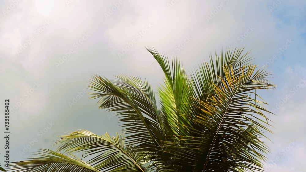 Low angle view of palm trees against cloudy sky