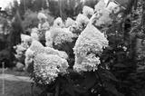 Hydrangea Paniculata "Lime Light" blooming in summer cottage garden