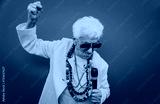Funny grandmother portraits. Senior old woman dressing elegant for a special event. Rockstar granny on colored backgrounds