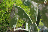 Opuntia cochineal scale (Dactylopius coccus) on the leaf of an Opunitie (Opuntia), Gran Canaria, Canary Islands, Spain.