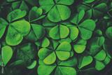 Background with green clover leaves for Saint Patrick's day. Background with a shamrock. Vintage film aesthetic.
