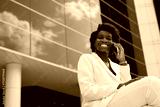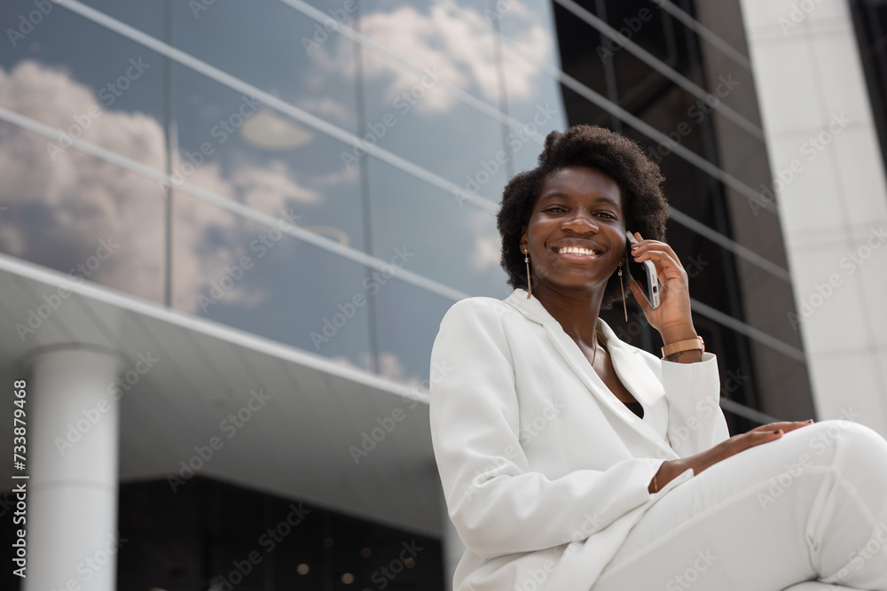 portrait of elegant successful african woman with mobile phone