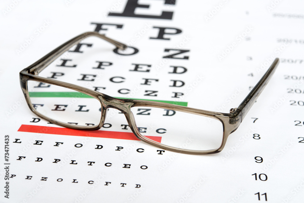 Eyeglasses on the eye chart background.