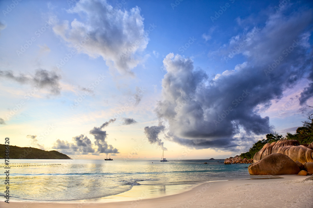 Sunset time at Anse Lazio beach, Praslin, Seyshelles