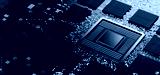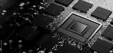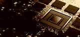 x86, ARM and RISK-V architecture processor on the motherboard. Abstract microchip. Electronic board. Graphics processor. Neuro processor. Abstract concept of microelectronics technology.