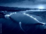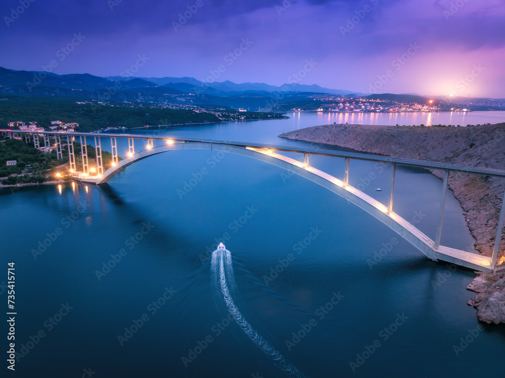 Bridge over the sea at sunset. Aerial view of modern Krk bridge