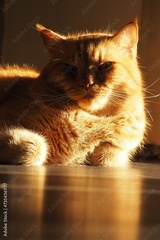 Wielki rudy kot pod słonecznym światłem