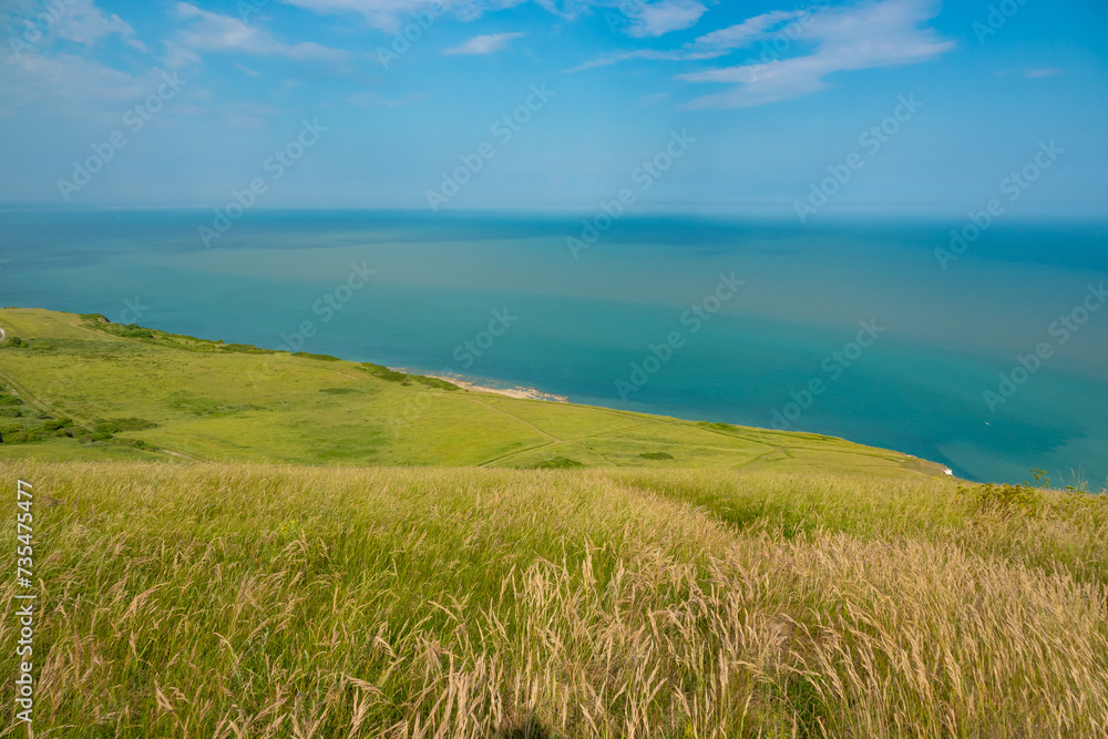 Amazing views from a walk along coastal pathway near seaside town of Eastbourne