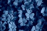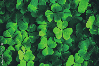 Background with green clover leaves for Saint Patrick's day. Abstract pattern with a shamrock. Spingtime nature. Vintage film aesthetic.