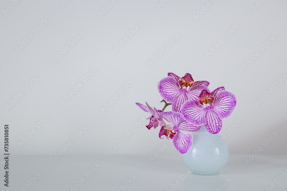 purple orchid in glass vase on white background
