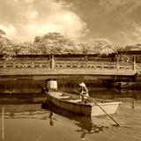 Himeji castle moat boat tour during full bloom cherry blossom in Hyogo, Japan