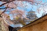 Scenic full bloom cherry blossom at Himeji castle in Hyogo, Japan