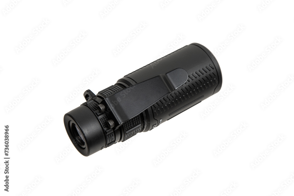 Optical monocular. Spotting scope perfect optical equipment for sport, tourism, hunting, wildlife and astronomy zooming. Isolated on white back