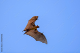Flying Fox on Maldives island. Fruit bat flying. Gray-headed Flying Fox (Pteropus poliocephalus).