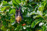 Flying Fox on Maldives island. Fruit bat flying. Gray-headed Flying Fox (Pteropus poliocephalus).