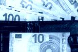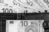 Euro sticking out of the wallet, Lots of banknotes, European currency, Financial concept, Business success