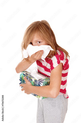 Girl blowing her nose.